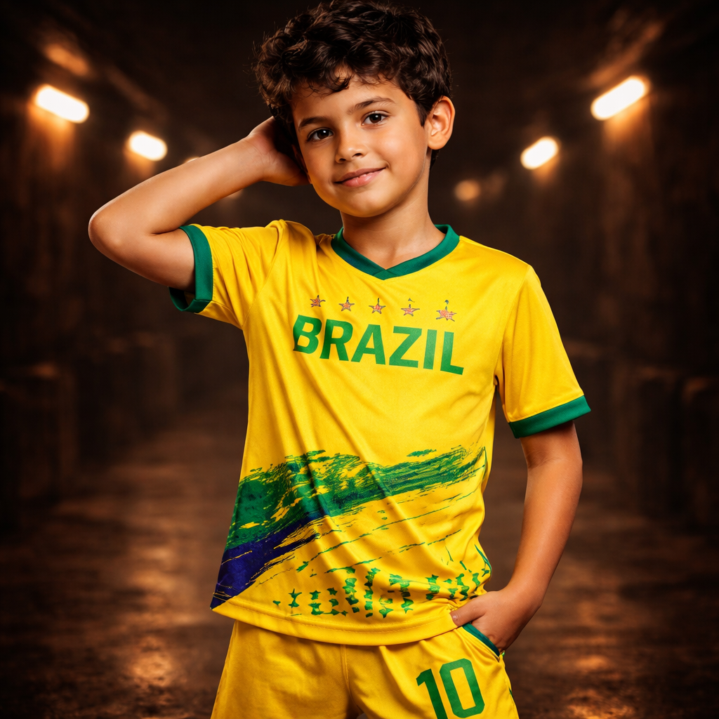 Este equipamento infantil captura a essência da Seleção Brasileira. Veste os teus filhos e vê o brilho nos olhos deles ao sentirem-se parte da equipa. No estádio, no recreio ou em casa a torcer pelo próximo golo histórico. Porque apoiar o Brasil não é só para os grandes… é uma emoção que passa de geração em geração.