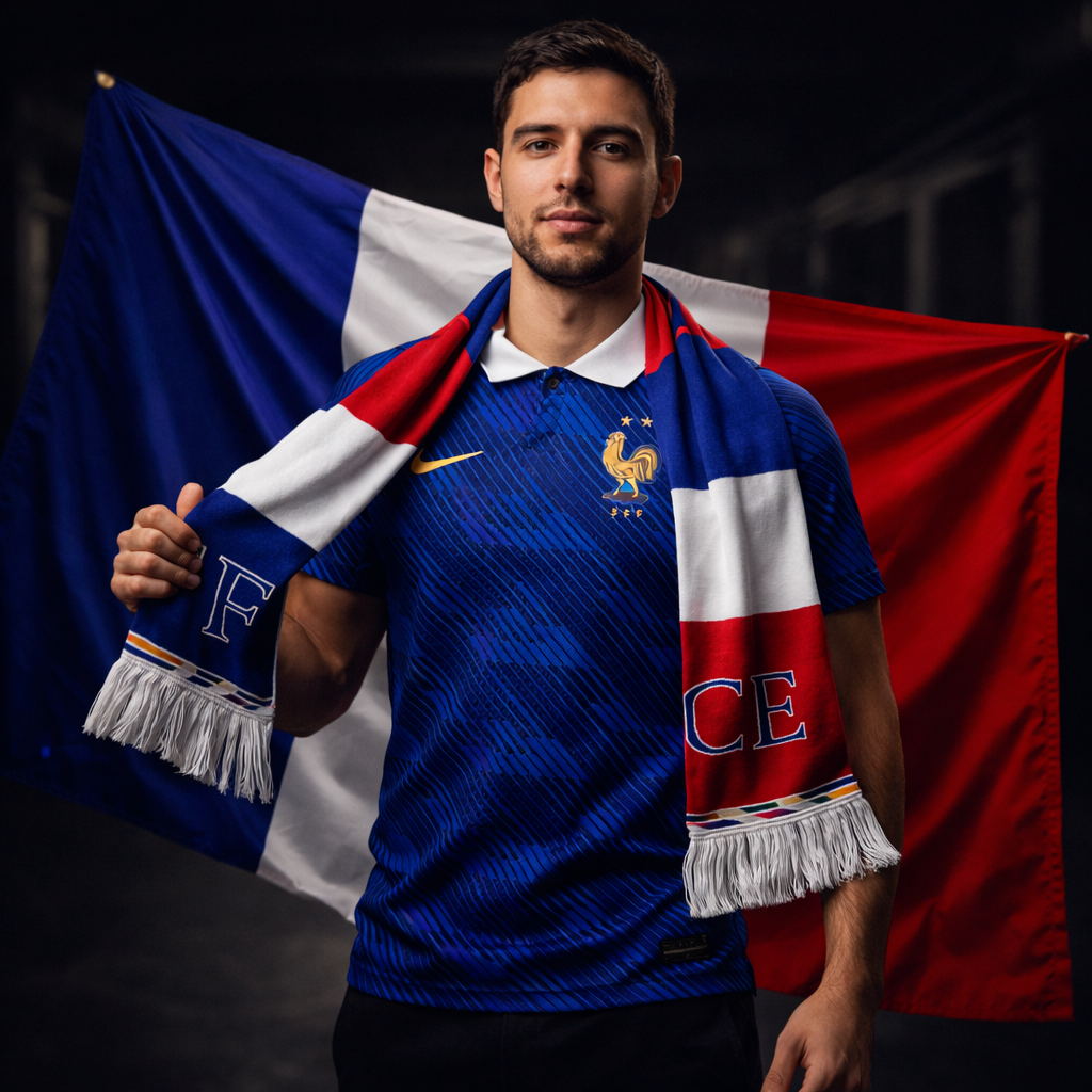 Este kit completo captura a essência da Seleção Francesa. Veste a camisola, enrola o cachecol e hasteia a bandeira – sente que estás totalmente unido à equipa e a milhões de torcedores. No estádio, na varanda, na rua ou em casa a vibrar com cada golo histórico. Porque apoiar França não é só comprar peças… é viver a emoção completa que dura para sempre.