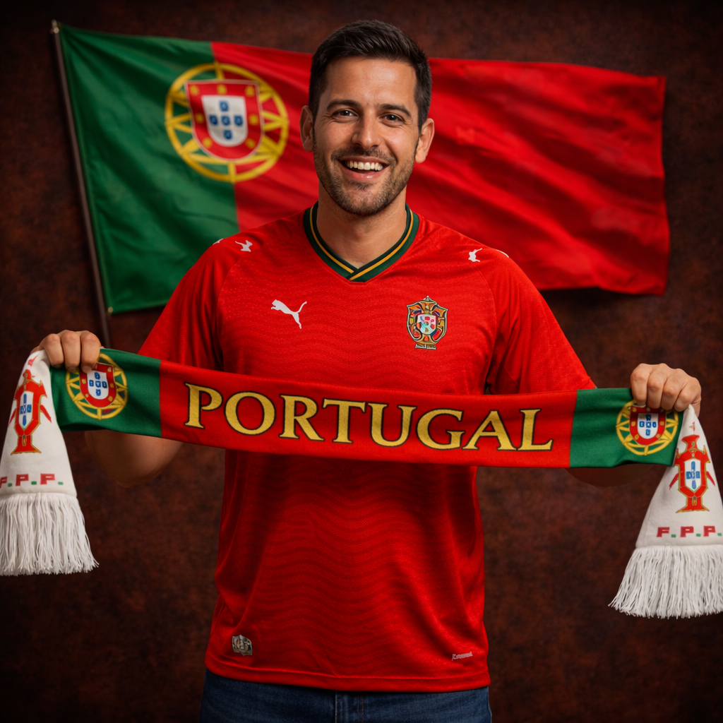 Este kit completo captura a essência da Seleção Portuguesa. Veste a camisola, enrola o cachecol e hasteia a bandeira – sente que estás totalmente unido à equipa e a milhões de torcedores. No estádio, na varanda, na rua ou em casa a vibrar com cada golo histórico. Porque apoiar Portugal não é só comprar peças… é viver a emoção completa que dura para sempre.