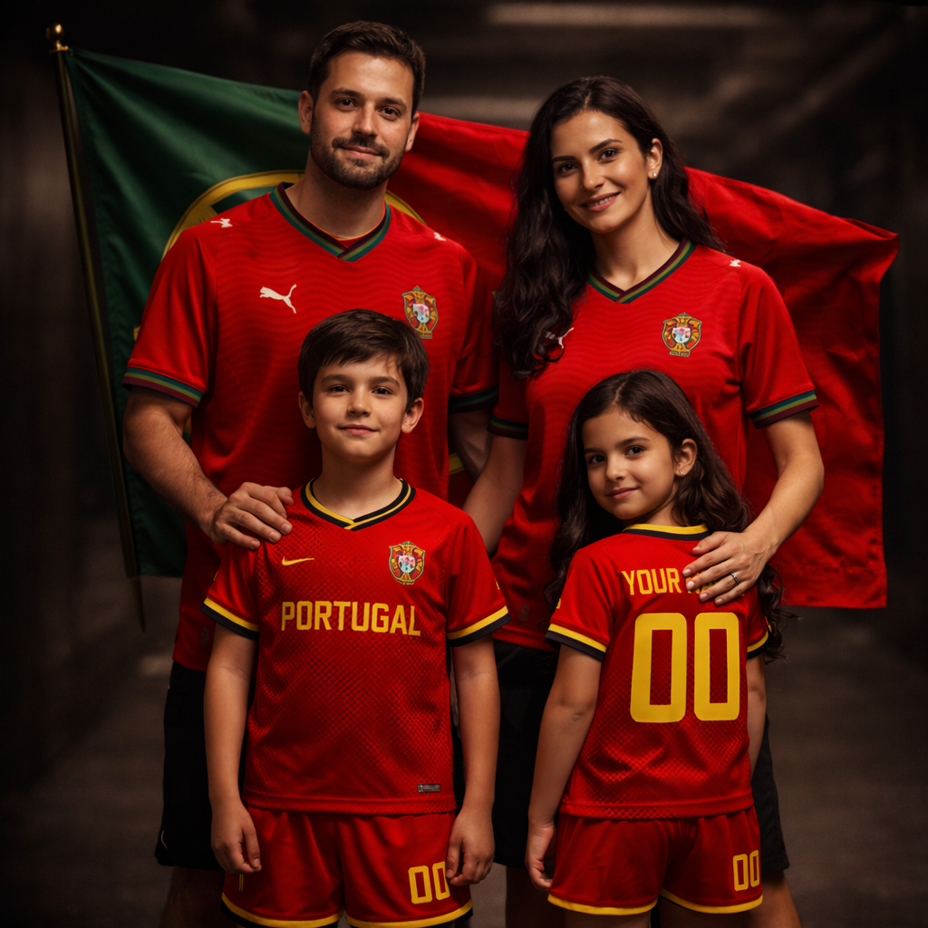 Este kit legado captura a essência da Seleção Portuguesa para toda a família. Vistam as camisolas, ponham os equipamentos nos vossos filhos s e hasteiem a bandeira juntos. Sintam que estão unidos à equipa e a milhões de torcedores. No estádio em família, na varanda a vibrar ou em casa a torcer pelo próximo golo histórico. Porque apoiar Portugal não é só cultura… é uma emoção que se passa de pais para filhos e dura para sempre.