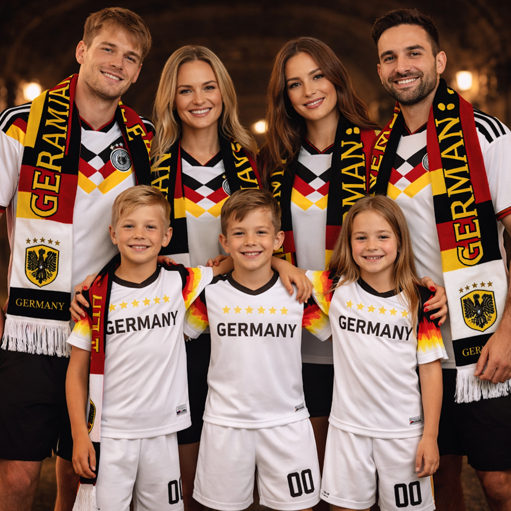 Este kit tribo captura a essência da Seleção Alemã para famílias grandes ou grupos de amigos. Vistam as camisolas, enrolem os cachecóis, ponham os equipamentos nos mais pequenos e hasteiem a bandeira juntos – sintam que estão unidos como uma verdadeira tribo de torcedores. No estádio em multidão, no churrasco a vibrar ou em casa a torcer pelo próximo golo histórico. Porque apoiar Alemanha não é só cultura… é uma emoção coletiva que une o pessoal todo e dura para sempre.