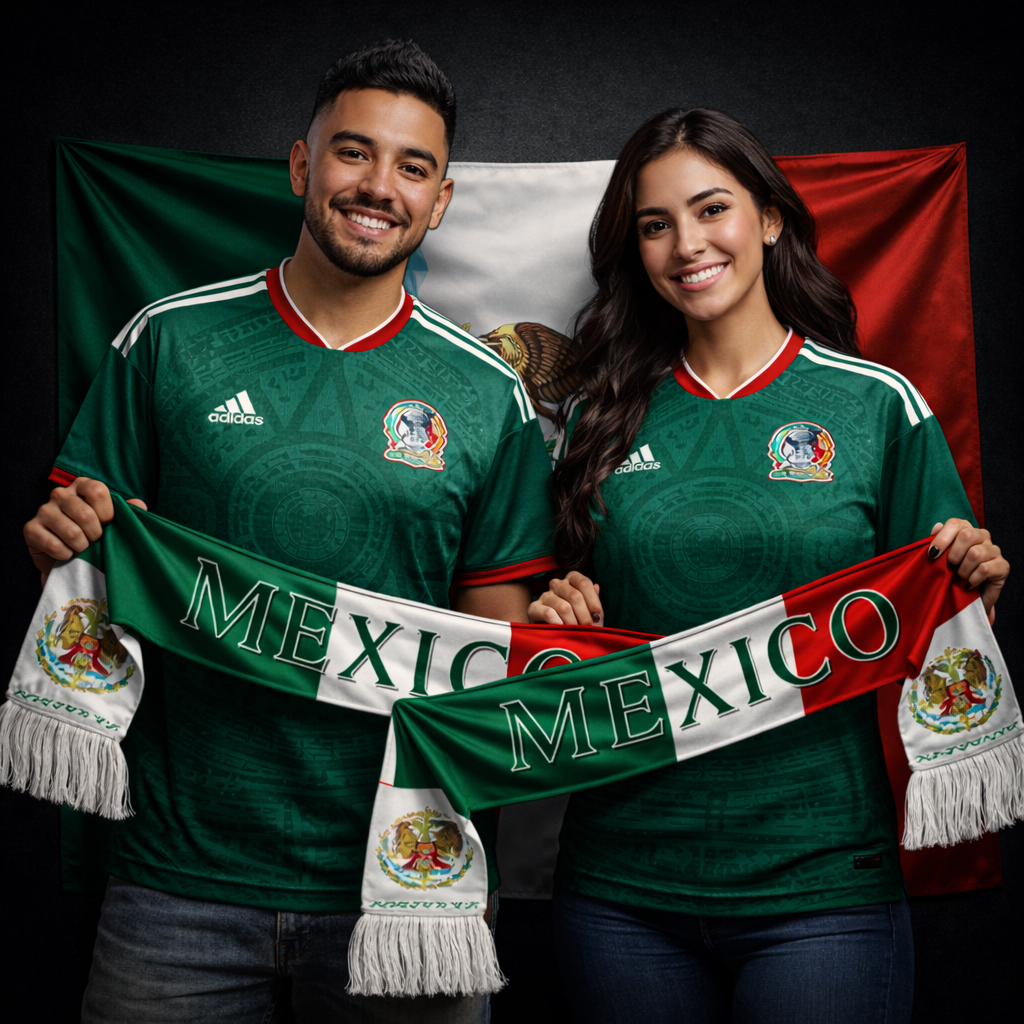 Este kit união captura a essência da Seleção Mexicana para casais. Vistam as camisolas juntos, enrolem os cachecóis ao pescoço e hasteiem a bandeira. Sintam que estão unidos à equipa e a milhões de torcedores. No estádio de mãos dadas, na varanda a vibrar juntos ou em casa a torcer pelo próximo golo histórico. Porque apoiar México não é só cultura… é uma emoção partilhada que dura para sempre.